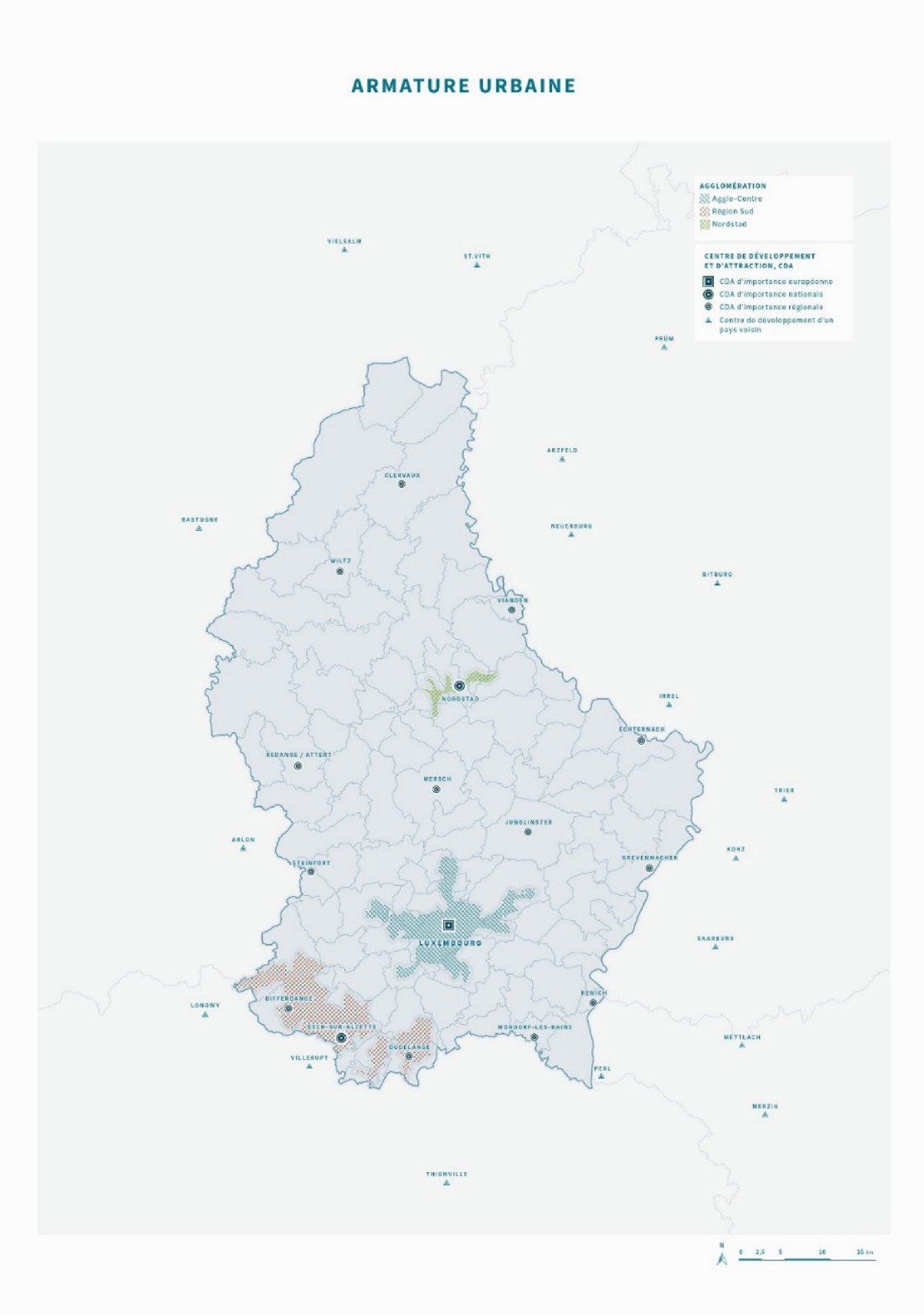 The national urban policy of Luxembourg is defined by the « Master Programme for Spatial Planning » (Programme directeur d’aménagement du territoire – PDAT).
